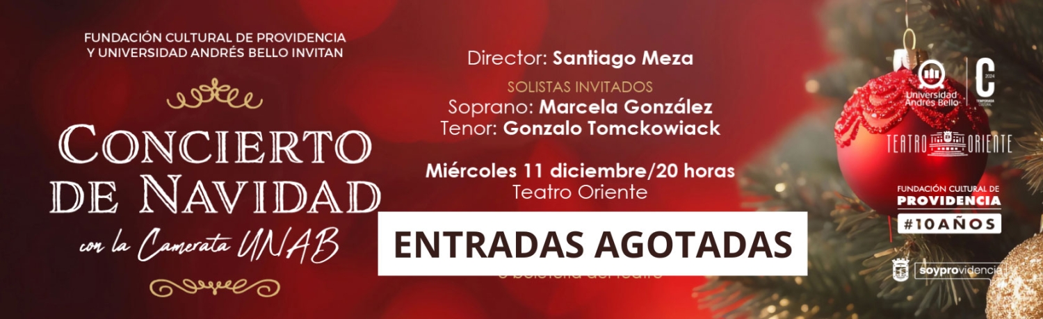 La Camerata de la Universidad Andrés Bello se presentará en el Teatro Oriente con un concierto de Navidad, bajo la dirección de Santiago Meza y la participación de los solistas invitados la soprano Marcela González y el tenor Gonzalo Tomckowiack.