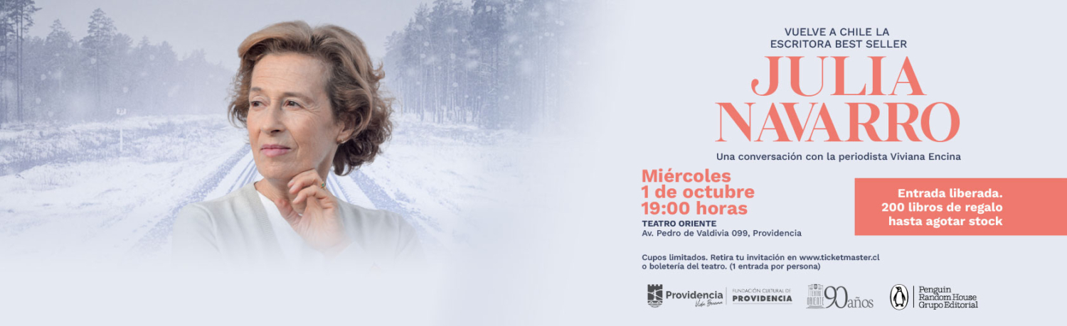 El miércoles 1 de octubre, a las 19:00 horas, la autora best seller Julia Navarro presentará su novela “El niño que perdió la guerra” en una conversación con la periodista Viviana Encina en el Teatro Oriente de Providencia.